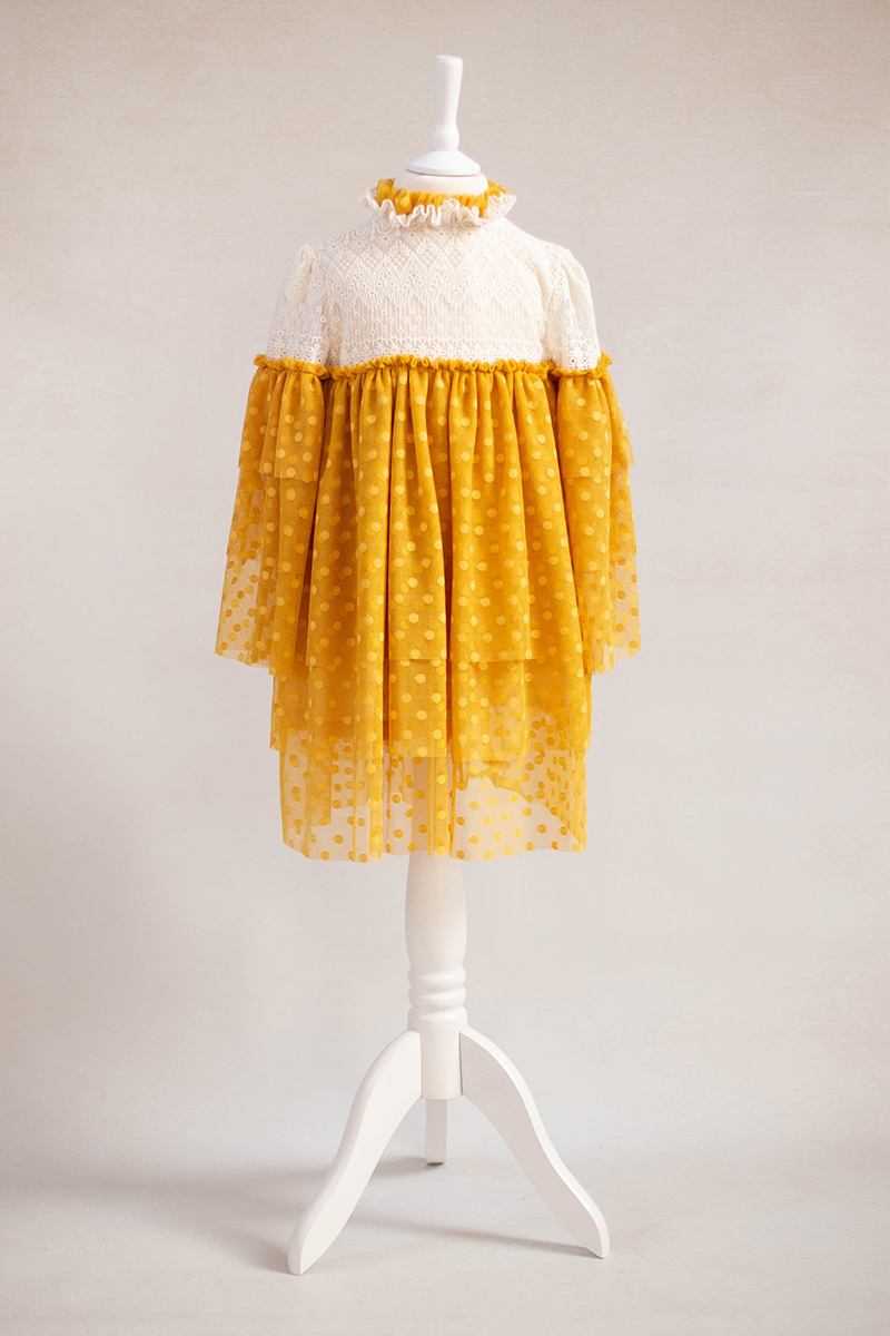 Rochia “Mini dots” este o combinatie minunată de tulle delicat cu buline mici si dantela crem de bumbac.