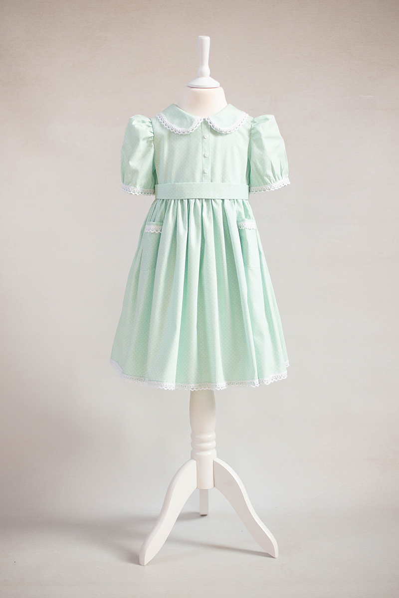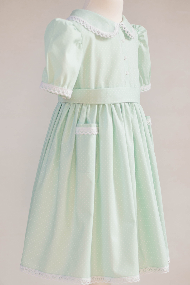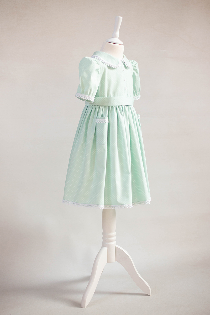 Realizată din bumbac imprimat cu buline mici si detalii de dantelă de bumbac, rochia “Petit dots” este potrivită sedințelor foto în natură sau studio.